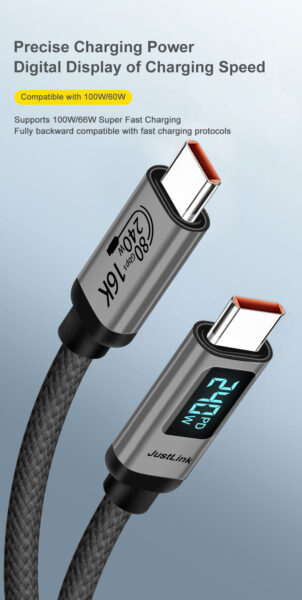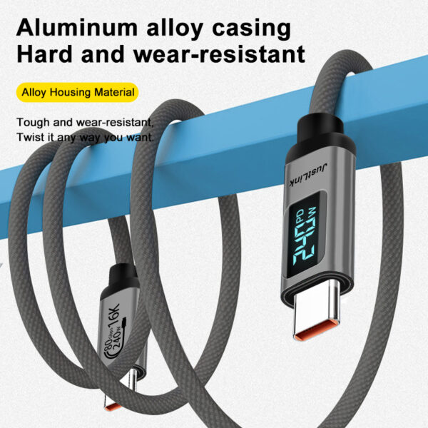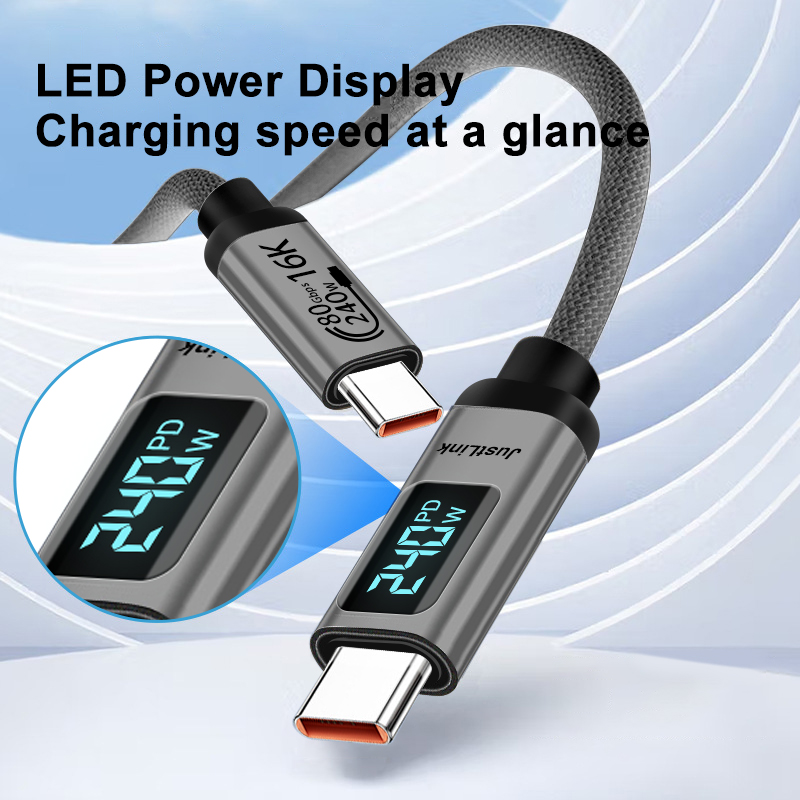 USB4 V2.0 USB C-C Cable fast charge-with data display (up to 48V5A 240W charging, data transfer-80Gbps, 16K@60Hz 8K@120Hz video transmission, compatible with Thunderbolt 5/4)