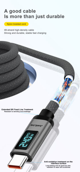 Harnessing the latest USB Power Delivery 3.1 Extended Power Range (EPR) specification, this cable delivers a massive 240W of power—enough to charge the most demanding professional workstations, gaming laptops, and future devices at maximum speed, even under full load.